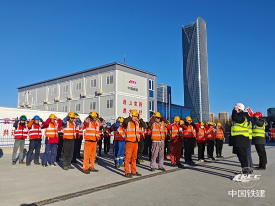 新建津?yàn)H高鐵濱海站項(xiàng)目組織安全早班會(huì)(楊薇燕 攝)