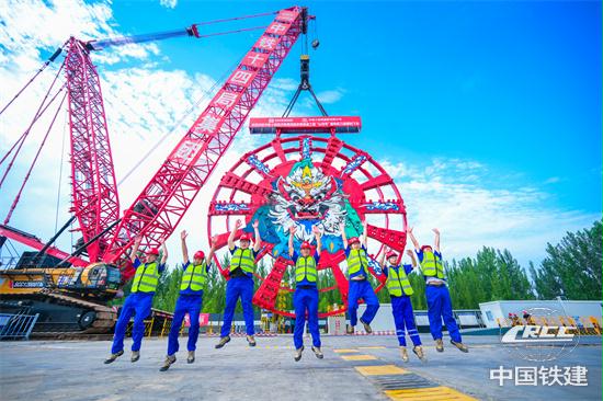 建設(shè)者慶祝盾構(gòu)機刀盤順利下井(趙榮發(fā) 攝)